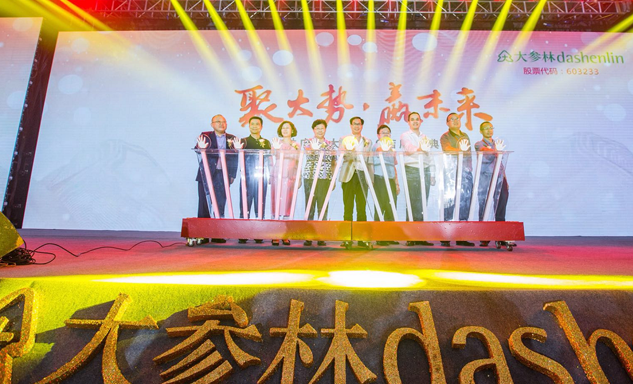 BG大游药业集团董事长刘景萍女士与大参林医药集团董事长柯云峰先生、中国医药商业协会执行会长付明仲女士等嘉宾共同开启了“聚大势•赢未来"大参林工商合作峰会的大幕。