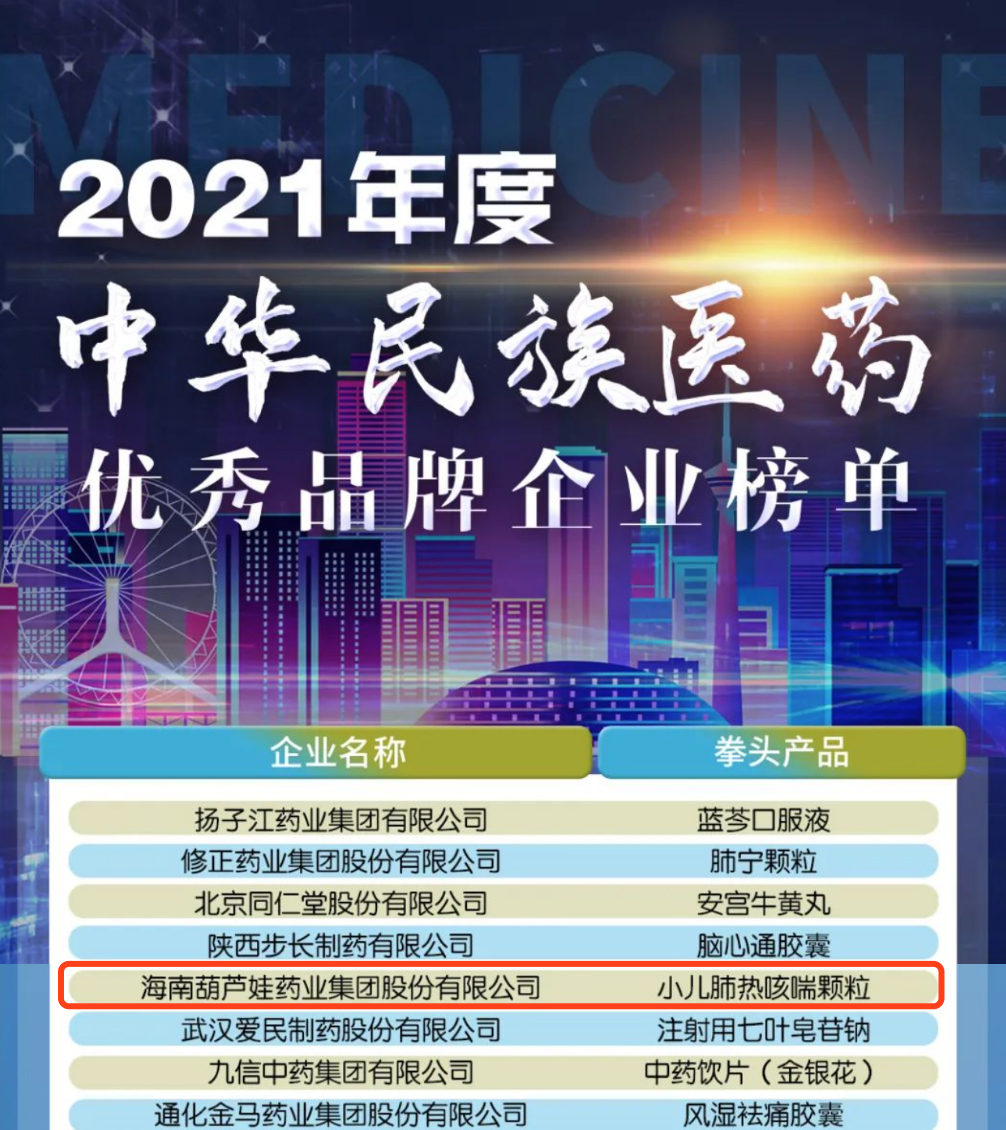 12月29日,全国工商联医药业商会发布了“2021年度中华民族医药优秀品牌企业榜单”,BG大游药业集团凭借黄金单品小儿肺热咳喘颗粒(4克)实力登榜。